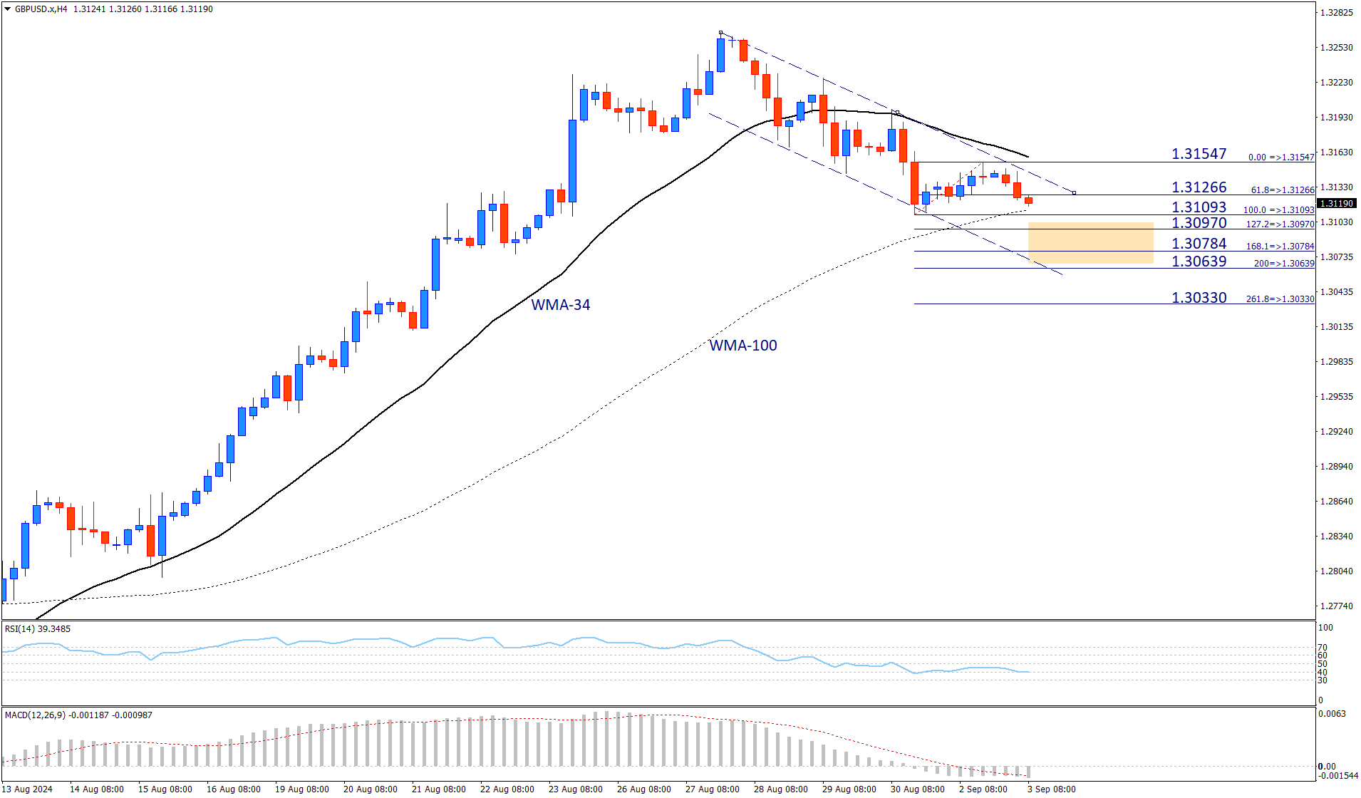 اگر خریداران موفق شوند میانگین متحرک 100 دورهای و کف قبلی را حفظ کنند، شکست بالای محدوده بالای کانال در 1.31547 سناریوی نزولی را باطل میکند. این شکست میتواند نشاندهنده یک بازگشت احتمالی و تغییر به یک روند صعودی باشد.
