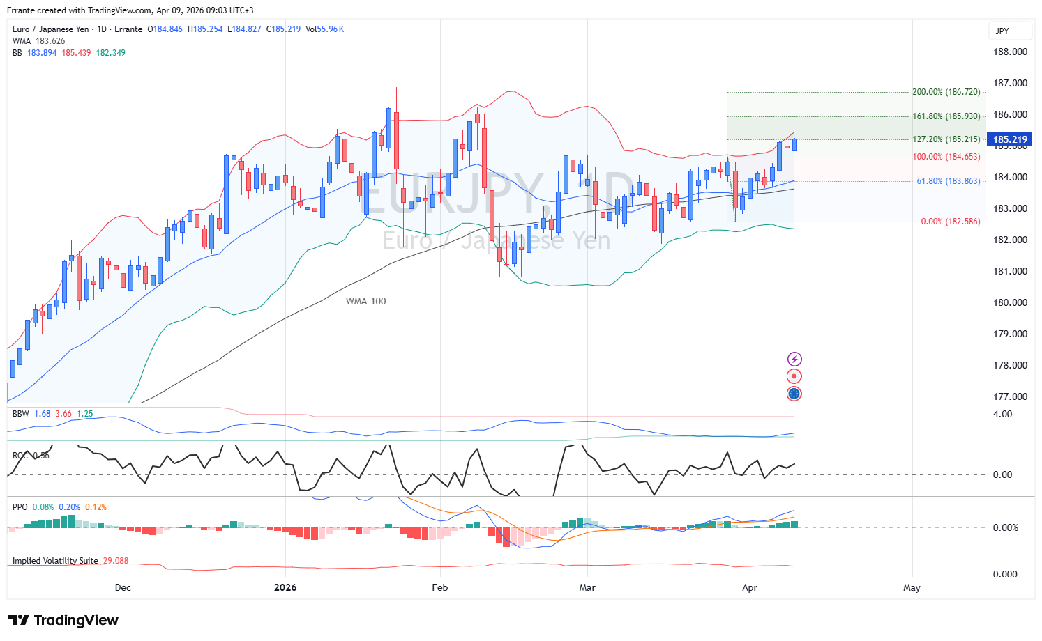 EUR/JPY همچنان یک سوگیری ملایم صعودی دارد، چون ابهام درباره آتش بس شکننده و فشار تورمی ناشی از نفت، بیشتر از یورو بر ین فشار می آورد. نمودار تا زمانی که قیمت بالای 184.653 بماند و امتداد 185.215 را تحت فشار نگه دارد، این دیدگاه را تایید می کند. تقویت دوباره انتظارات انقباضی برای BOJ یا افت عمیق تر در بازدهی های جهانی، مهم ترین شرط هایی هستند که می توانند این جهت گیری را تغییر دهند.